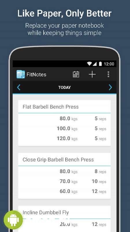 FitNotes - Gym Workout Log - приложение для людей занимающихся тренировками как в специализированных залах, так и в домашних условиях. С помощью него пользователи смогут просчитывать свои дальнейшие действия, прорабатывать долгосрочные курсы, собирать статистические данные, использовать календарь тире ежедневник для записи, а так же многое и многое другое. Широкий функционал программы успешно соседствует с минималистичным исполнением. Что и делает продукт весьма удобным и комфортным в управлении и использовании, как универсального помощника в постоянной работе над собой.