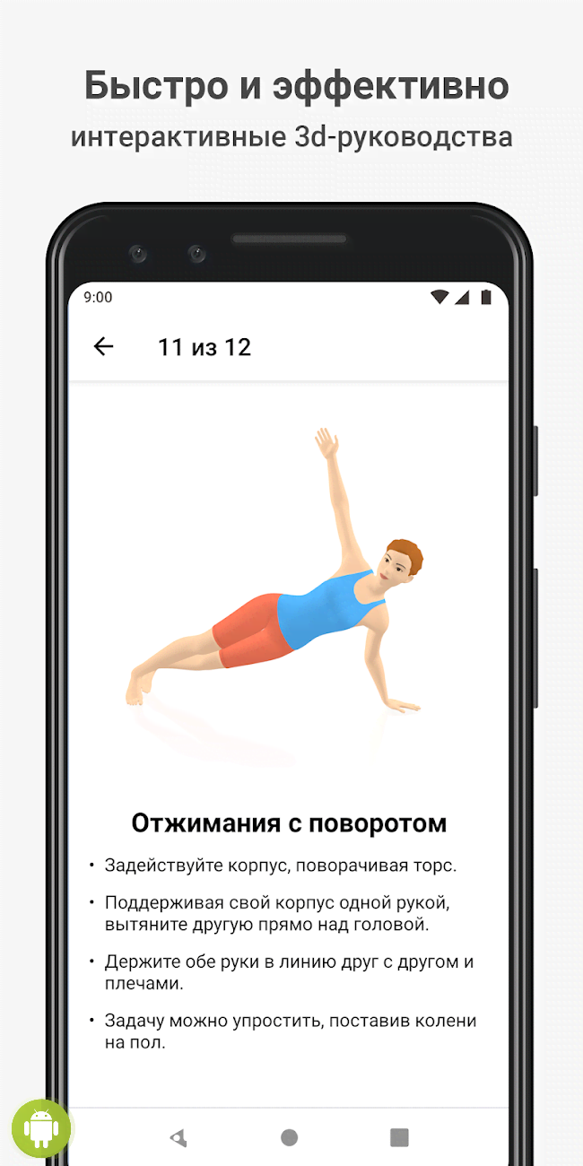 Seven - 7 Minute Workout - приложение для тех кто хочет поднять себе мышечный тонус, существенно улучшить самочувствие, взбодриться и так далее, но не имеет возможностей или банального желания посещать спортзал. Данная программа предлагает им, как ни странно, программу состоящую из простейших, но таких полезных и работоспособных упражнений, таких как разные виды приседаний, отжиманий, прыжков и всего прочего, что с лёгкостью можно выполнять в домашних условиях. 7 минут найдутся у каждого, а утренняя зарядка - это один из важнейших способов зарядиться на целый день.