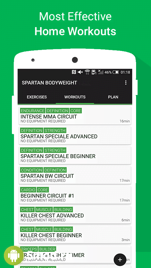 Home Workout MMA Spartan Pro - полезное приложение для всех кто хочет существенно увеличить мышечную массу в домашних условиях и без использования каких-либо особых тренажёров. Пользователям демонстрируются уроки и курсы в которых наглядно указаны последовательности действий, группы мышц, что задействованы при том или ином упражнении, а так же программы позволяющие развивать гармонично и постепенно. Так же можно создавать собственные связки раундов если человек чувствует уверенность в том, что он делает. Высокая продуктивность при хорошей самоотдаче обеспечит всех требуемым результатом.