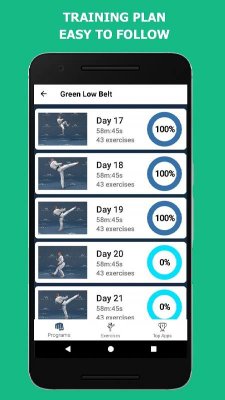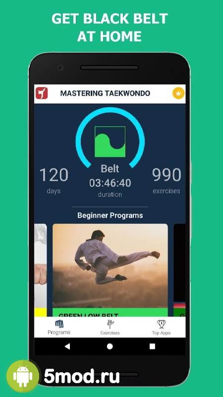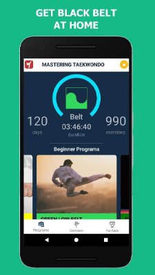 Mastering Taekwondo at Home - образовательного направления приложение, что предлагает пользователям познакомиться в домашних условиях и весьма продуктивно продвинуться в изучении и навыках различных единоборств. В данном случае участникам предлагается уроки и тренировки в сфере тхэквондо, каратэ и кикбоксинга. Что будет полезно не только желающим добиться результатов в этом, но и просто предпочитающих таким образом совершать зарядку, поддерживать тонус и так далее. Более оригинальные упражнения, по сравнению со стандартными курсами, детально расписанные инструкции, большие объёмы разделённые на уровни и многое другое порадует заинтересовавшихся подобным.