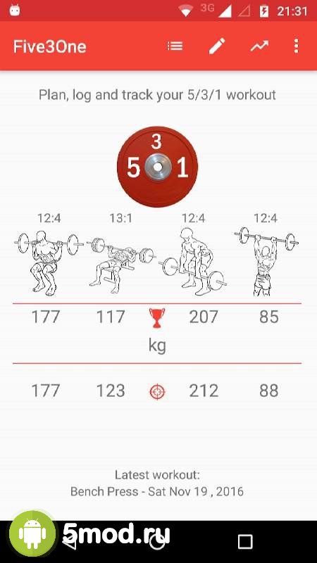 Wendler 5/3/1 log - приложение для тех кто в своих тренировках выбрал весьма известную методику. Которая обеспечивает и гармоничное движение и при этом не превращает жизнь спортсмена в кошмар из-за постоянных нагрузок. Представленный проект, сохраняя все свои основные и базовые качества, предлагает всё настраивать под свои запросы и предпочтения. Благодаря чему можно будет действовать в весьма и весьма комфортных условиях. При этом продукт обладает рядом дополнительных инструментов и возможностей, что позволяет находить всё необходимое прямо здесь же. Что так же добавляет положительных особенностей представленной программе.