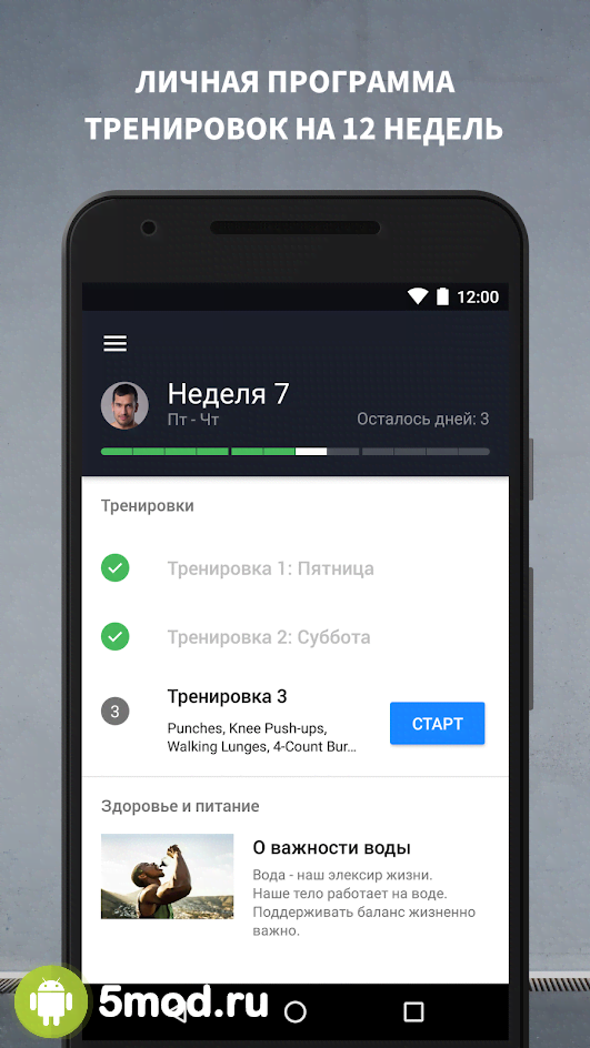 Runtastic Results Bodyweight Workout & Fitness - приложение для всех кто хочет начать тренировки в домашних условиях. И не только для поддержания тонуса, но и для достижения впечатляющих результатов без необходимости доступа к различным тренажёрам. Понять и правильно выполнить все программы поможет просмотр более 180 роликов с пошаговой демонстрацией и объяснением механики. Ну а разные "настройки" помогут оптимальный темп работы, чтобы занятия не превратились в форменную пытку. Данное приложение сможет преподнести пользователям всю необходимую информацию и серьёзно мотивировать на результат.
