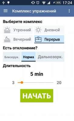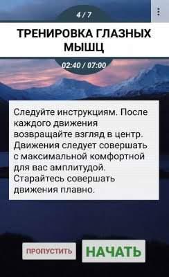 Eye exercises - ещё одно полезное и очень результативное приложение направленное для проведения комплексов упражнений для глаз. Как в гимнастических целях, так для помощи в борьбе с различными неприятностями. Есть будильник для напоминания о необходимости регулярных занятий, а так же статистика для отслеживания продуктивности деятельности. Что в купе с разнообразными и совершенно несложными действиями позволяет весьма и весьма расслабляться. Не только в теме зрения, но и просто от высокой динамики современной жизни. 5-10 минут в день станут отличным отдыхом для человека и его уставших глаз.