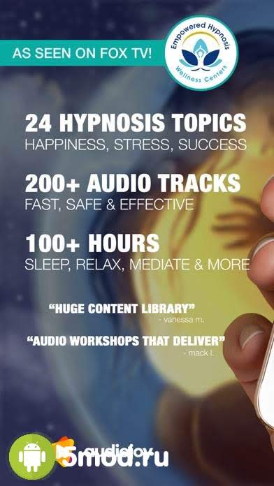 Hypnosis for Sleep & Dreaming - отличное антистрессово-успокаивающее приложение, что порадует любого человека, что обожает что-то слушать посредством своего мобильного гаджета. В данном случае им предлагаются и релаксирующие мелодии и мотивирующие курсы. А так же весь прочий контент, что улучшит самочувствие, подарит спокойные сновидения, даст заряд бодрости и многое другое, что гарантированно придётся кстати всем кто хочет что-то изменить в свой жизни. Симпатично-удобный интерфейс, настройки, выбор параметров работы, постоянные обновления и всё прочее придётся по душе пользователям.